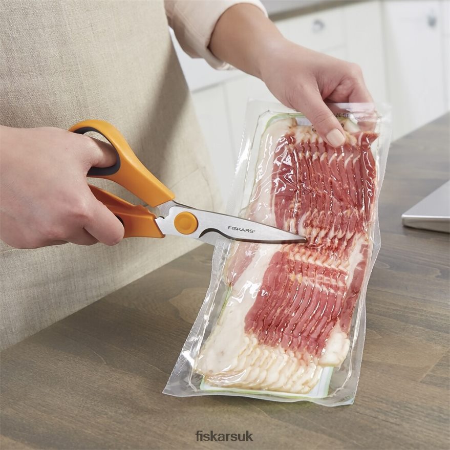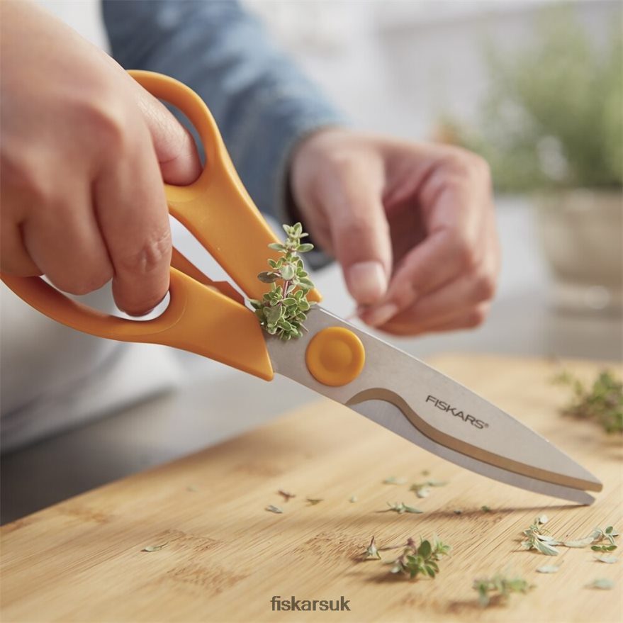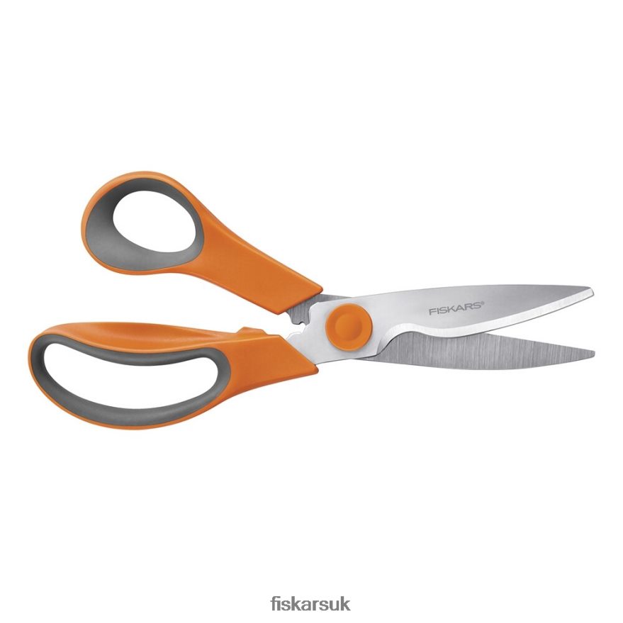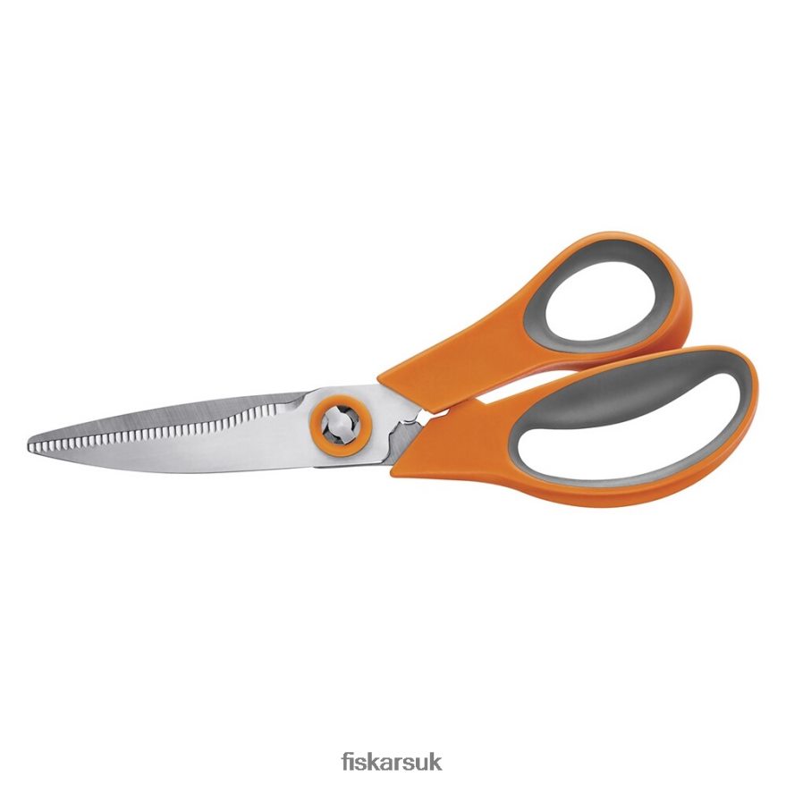 Ever made an entire meal with just one tool Allow us to introduce the kitchen’s ultimate jack-of-all-trades. Whether you’re stripping stems, chopping vegetables, opening packaging or cutting meat, these all-purpose shears go from one task to the next without complaining. A serrated blade edge grips for precision no matter what you’re cutting, and sculpted handle loops with Softgrip touchpoints bring Fiskars’ hallmark comfort to every use. Plus, a take-apart, dishwasher-safe design makes post-meal cleanup a cinch.UseCare