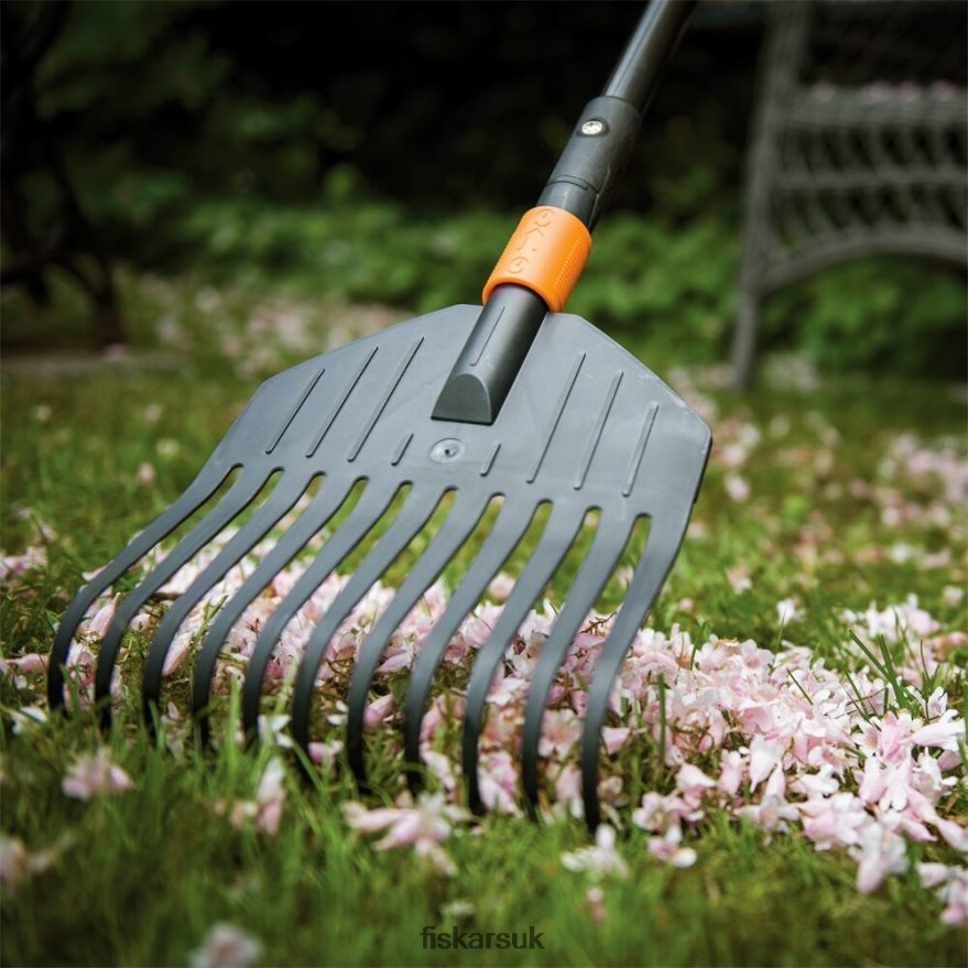- The Fiskars & QuikFit Shrub Rake Head features durable tines designed to flex under pressure – without breaking
