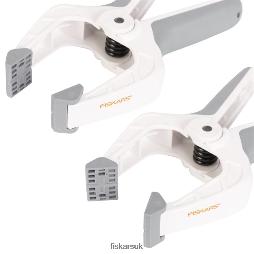 - Fiskars Spring Clamp Set features four durable clamps with pivoting jaw pads for an even grip while securing together DIY materials